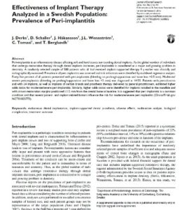 7月のジャーナルクラブに引き続きの論文ですが、簡単に解説すると(詳細はいつかアップします~!)、スウェーデンにおいて、インプラント埋入後、インプラント周囲粘膜炎を含めたインプラント周囲組織の炎症性病変が患者レベルで77%、インプラント単位では60%が起こっている。