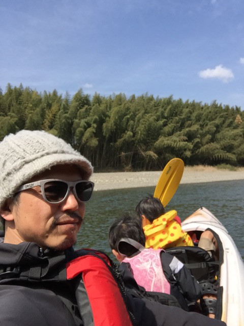 錦川中流からのカヤック。水量が少なく、神経を使いそう^^; 息子たちを連れて、のんびりとダウンリバー。